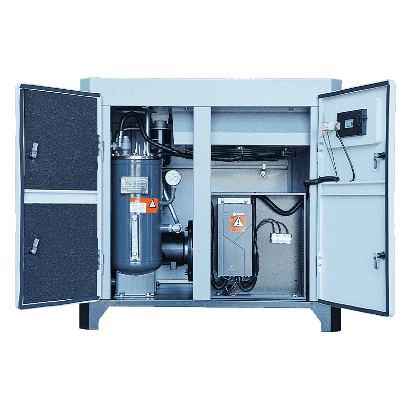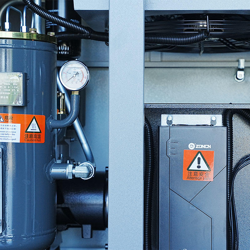 Variable frequency control allows the motor to dynamically adjust its speed according to real-time air demand. For the 20HP micro-oil twin screw single stage compressor, this configuration enhances energy flexibility because the compressor no longer needs to operate at a constant load. Instead, the frequency inverter determines the optimal motor speed required to meet airflow demand while reducing unnecessary energy consumption. This configuration is especially advantageous in facilities with fluctuating production schedules, diverse equipment loads or intermittent air usage patterns. When paired with Zhejiang Haidebao Industrial Technology Co., Ltd.’s oil-cooled permanent magnet synchronous motor, the variable frequency system ensures smooth speed transitions and controlled temperature behavior. The compressor’s multi-level noise management further supports variable frequency operation by preventing abrupt sound changes during speed adjustments.