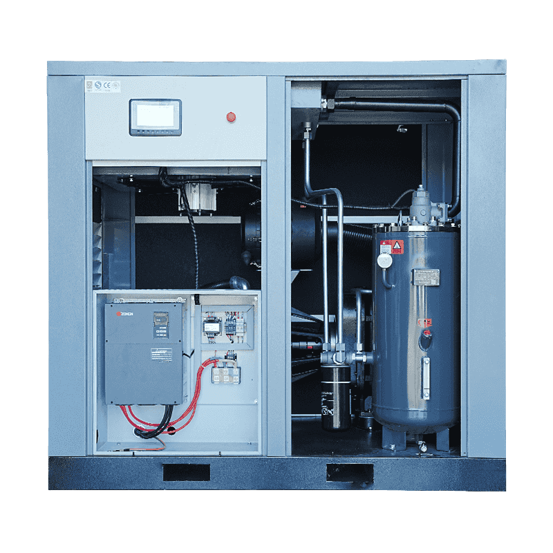 Energy efficiency in the 75HP micro-oil twin screw single stage compressor is supported by its advanced micro-oil lubrication system. The lubrication layer reduces rotor friction, helps maintain stable internal temperature, and assists in sealing the compression chamber. These factors enhance the machine’s volumetric efficiency and reduce energy losses. During long-term use, maintaining lower friction and consistent heat distribution allows the compressor to operate with less power consumption while still delivering the required displacement. This contributes to energy-conscious operation, especially in facilities where compressors run continuously. The optimized lubrication also lowers mechanical wear, reducing the energy penalty caused by aging components and supporting stable performance across an extended lifecycle.